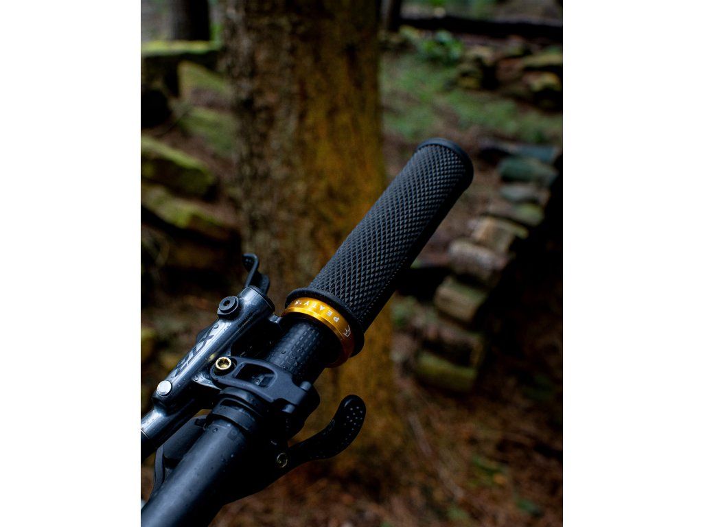 • O BEZPEČNÉ USAZENÍ NA ŘIDÍTKÁCH SE STARÁ ZÚŽENÉ JÁDRO, VYROBENÉ Z 80 % Z RECYKLOVANÉHO OCEÁNSKÉHO PLASTU A 8 MM ŠIROKÁ ELOXOVANÁ HLINÍKOVÁ OBJÍMKA.